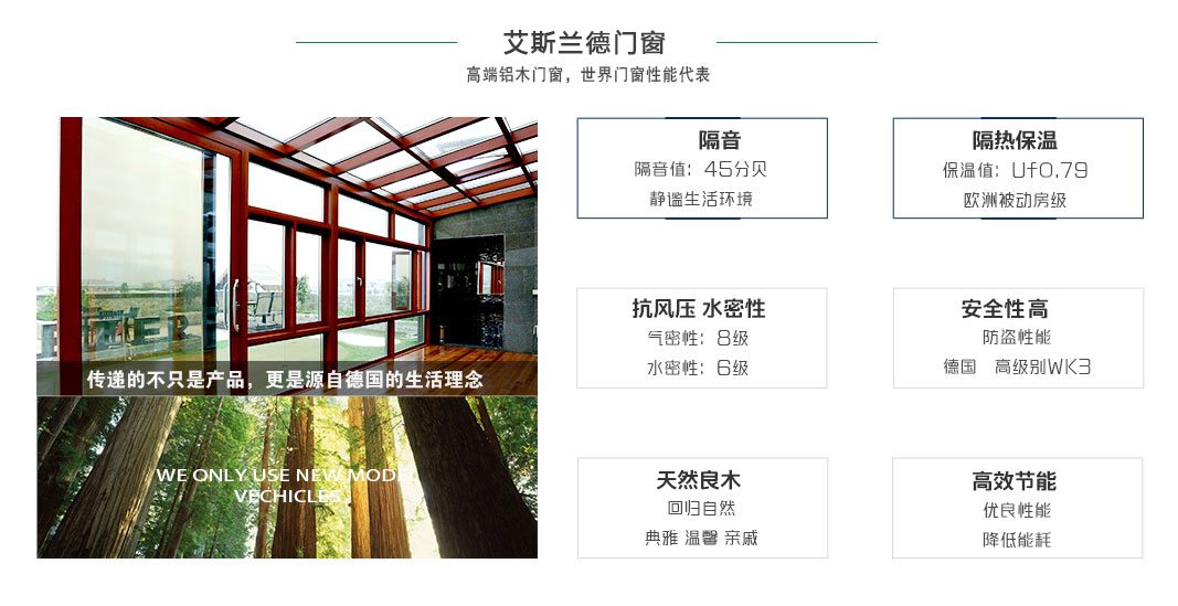 公司采用進口集成材、雙層及多層中空玻璃、密封條、進口水性漆、德國進口五金件加之現代木窗在工藝上的科學改進,使產品智能環保,更具競爭力。同時“艾斯蘭德”歐式木窗具有保溫、節能、隔音降噪、開啟方式多樣安全、外觀高雅等優點,使現代家居裝配置有了很大提升,為家增加亮點,提高樓盤檔次。